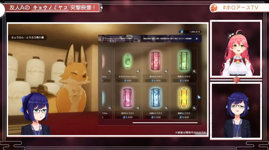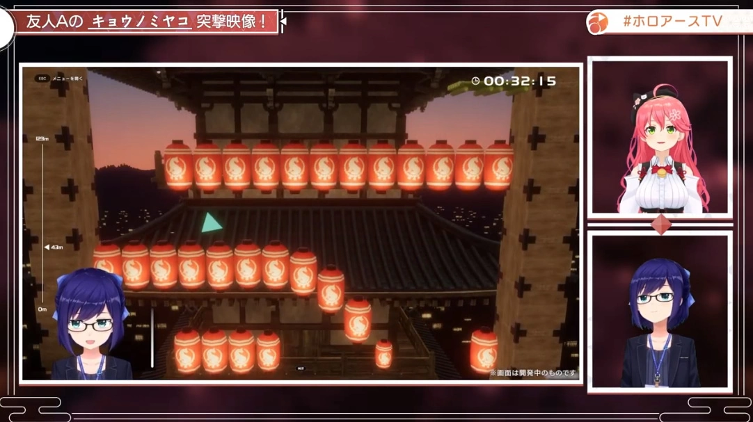 在节目后段则是介绍即将在 7 月 15 日开演的 Protolive 活动「Protolive#2 ~Yamato Phantasia~」里面出现的新功能,首先是从 7 月 8 日起,该 Live 的活动舞台「京之都」会开放观众参观(到 7 月 21 日为止),在那里会有负责导览的 NPC 出现,在他的引导下能自由的在充满日式幻想的舞台里活动,还能游玩里面登场的小游戏,完成挑战后会获得能在里面使用的贴图与萤光棒等道具,此外还有使用《Holoearth》货币购买的「我推灯笼」、测试自己运气的神籤等等,更多有趣内容欢迎粉丝和观众们在 7/8 开放后自由前往参观。