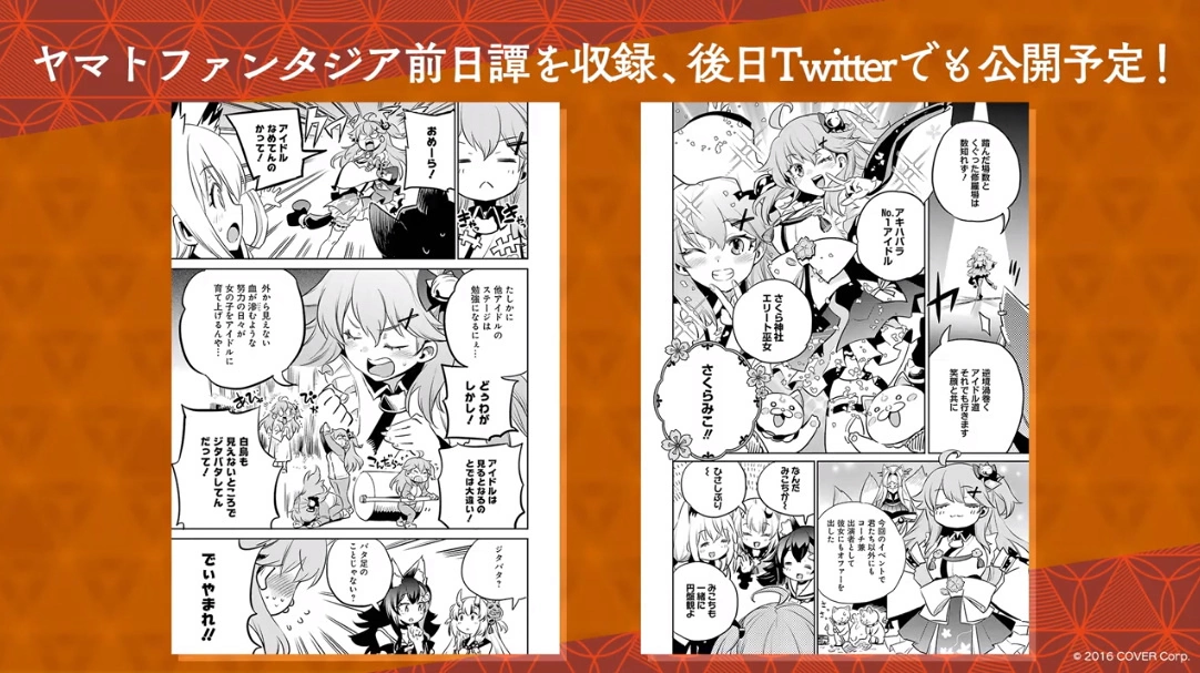 节目由 hololive 工作人员友人A与樱巫女、大神澪、博衣小夜璃四人一起主持,节目开始时先为网路漫画《Holoearth Chronicles Side:E ヤマト神想怪异谭》单行本第一集做宣传,并向观众介绍各通路的预购特典等等,而樱巫女特别登场的短篇漫画未来会在推特上公开,敬请期待。