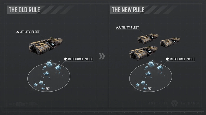 【解除资源点採规模的限制】这一新机制下,开拓者可编队任意数量的工程舰对同一资源点进行开採。
