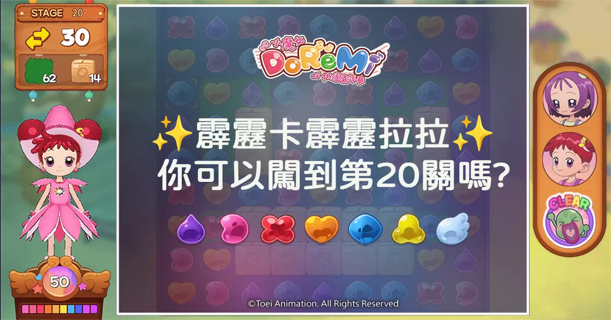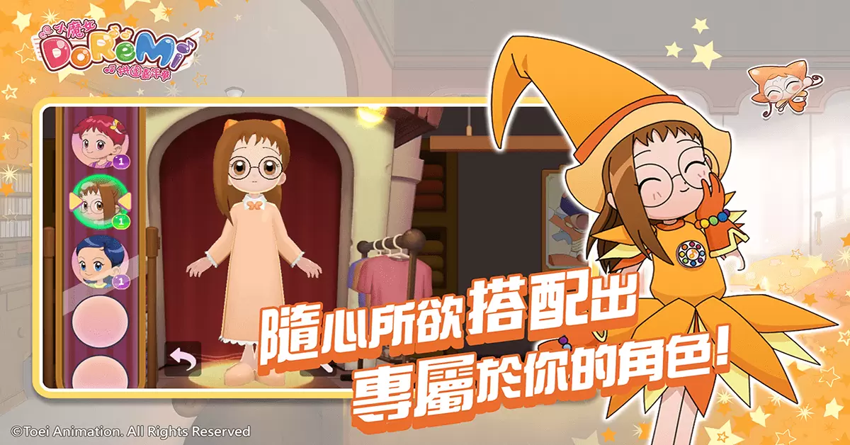 动画《小魔女DoReMi》的魔法咒语琅琅上口,一句「霹雳卡霹雳拉拉」就能让人接上一句「波波力那贝贝鲁多」,满满童年回忆涌现,官方将经典动画剧情融入游戏之中,故事描述从小幻想成为魔女梦想的主角春风 DoReMi,某天不小心拆穿魔法堂老闆魔女莉卡的身分使她变成青蛙,为了帮助魔女莉卡恢复原状,而和好友小爱、羽月一起成为魔女见习生,共同完成多种任务,以成为独当一面的魔女为目标迈进。在游戏中也规划了魔女晋级考试的拼图关卡,通关成为高等级的魔女还可获得更好的每日奖励哦!而游戏中也添加了故事新篇章,就等各位亲自游玩体验!