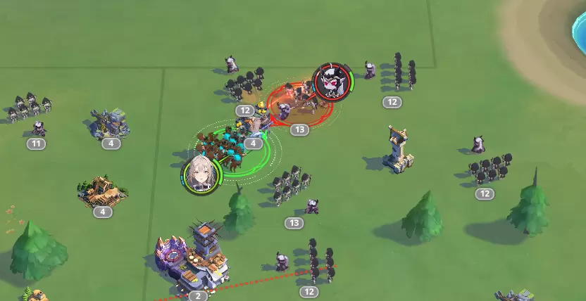 我们运用远程战斗的概念,让玩家可以根据地形、距离、部队和英雄的类型进行各种策略。像弓兵这样的远程物对可以从远处攻击敌人,但像骑兵这样快速移动部队则可以迅速接近并攻击弓兵。换句话说,我们平衡了远程部队的优势与其他部队的特长。