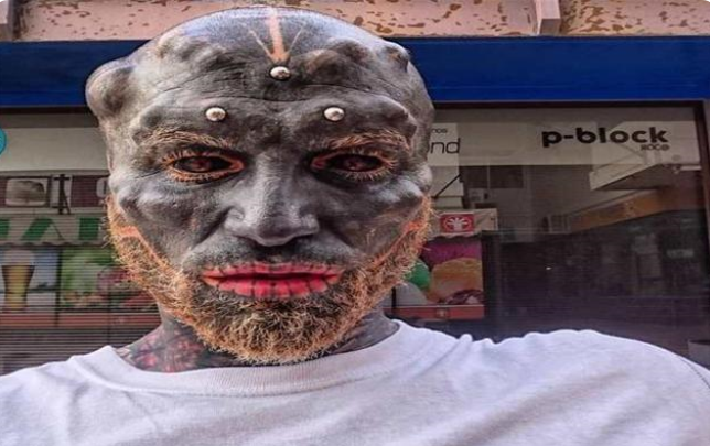 一个男子疯狂想变成外星人,把自己变成了怪物(外星人纹身)