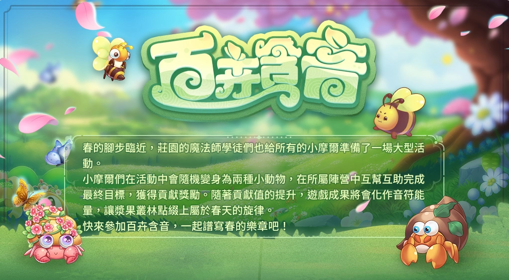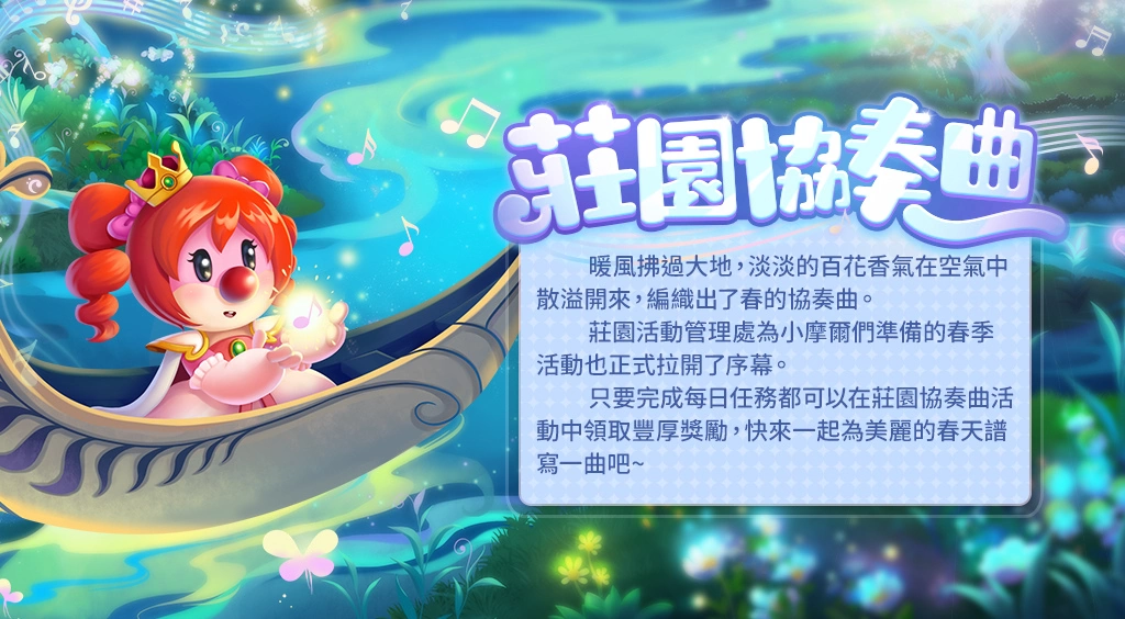 快来为美丽的春天谱写一曲专属庄园的动摩旋律吧!活动期间内,通过完成每日任务即可获得对应进度奖励【音符能量】、【钢琴音色碎片】和春风季节币、寻宝券等奖励。