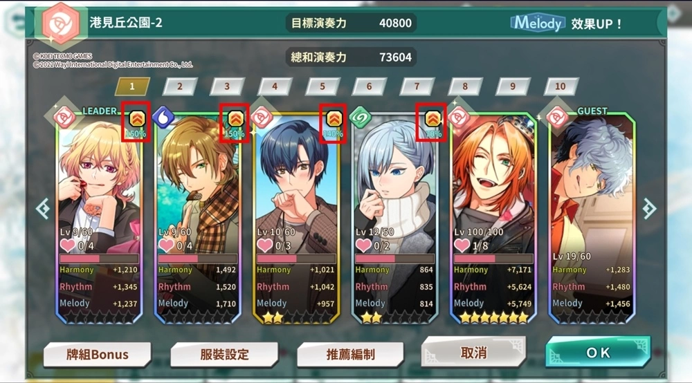 而活动关卡中,有「卡片加成」、「角色加成」的活动专用加成效果。将加成对象的卡片编入牌组,完成活动中的街头表演,可提升演奏会券的获得量。