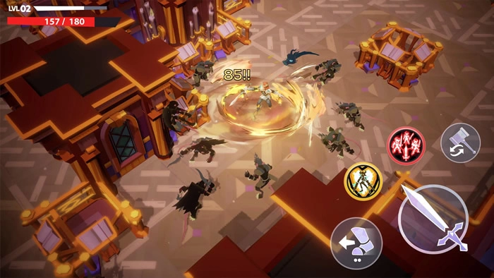 在游戏中玩家可以透过多达 20 名有着各种不同特徵能力的英雄,与各种武器装备组合,打造出属于自己最强风格的英雄来进行关卡挑战,并探索由疯狂国王内心所诞生的巨大宫殿进行冒险;同时本作还将会搭载 Roguelike 随机迷宫关卡要素,关卡将会不断随机改变;玩家将勇闯多达 15 个之多的领域,将迷宫彻底压制,解开国王疯狂的秘密与真相。