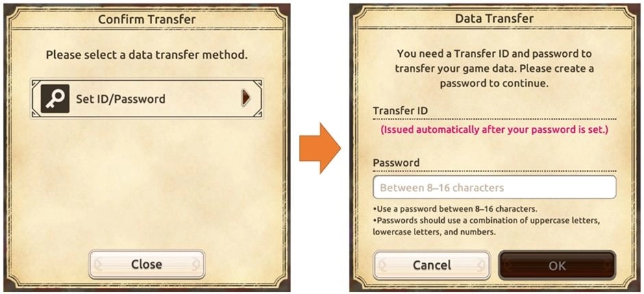 玩家不需要各别申请资料转移,但必须使用转移 ID 来继承资料。转移 ID 将在 4/27 维修后显示,只要在主画面点击帐号转移(Account Transfer),即可进入转移页面设置 ID。若不想将资料沿用到新营运商,也可以透过选项 [Menu] > [Support] > [Customer Support] 并选择 Decline Transfer 拒绝转移,然而这也意味着 6/1 后该帐号将无法使用。