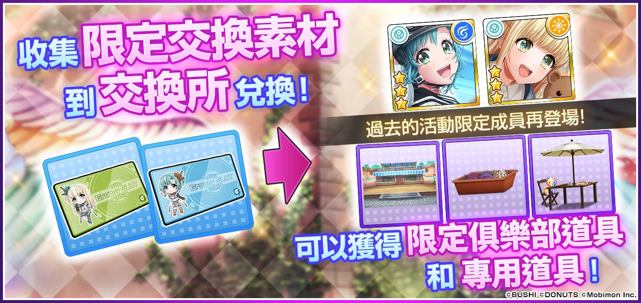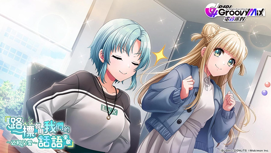 由移动怪兽代理,日本人气娱乐公司「武士道(Bushiroad)」和 「DONUTS」 开发的首款女 DJ 电音手游《D4DJ Groovy Mix 电音派对》推出全新 SLOT 活动与期间限定转蛋「『路标就用我们的话语来做』~乙和&乃爱~」,★4 成员新登场,获得机率 UP!