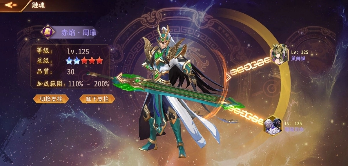 武将晋升紫金品质,即可连结两只链魂武将,更加灵活调配队伍