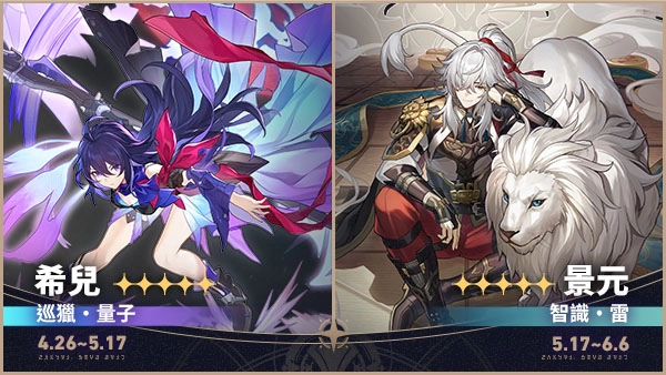 于 4 月 26 日 10:00~5 月 17 日 17:59 期间,限定五星角色「希儿(巡猎.量子)」、限定五星光锥「于夜色中(巡猎)」跃迁成功机率限时提升。