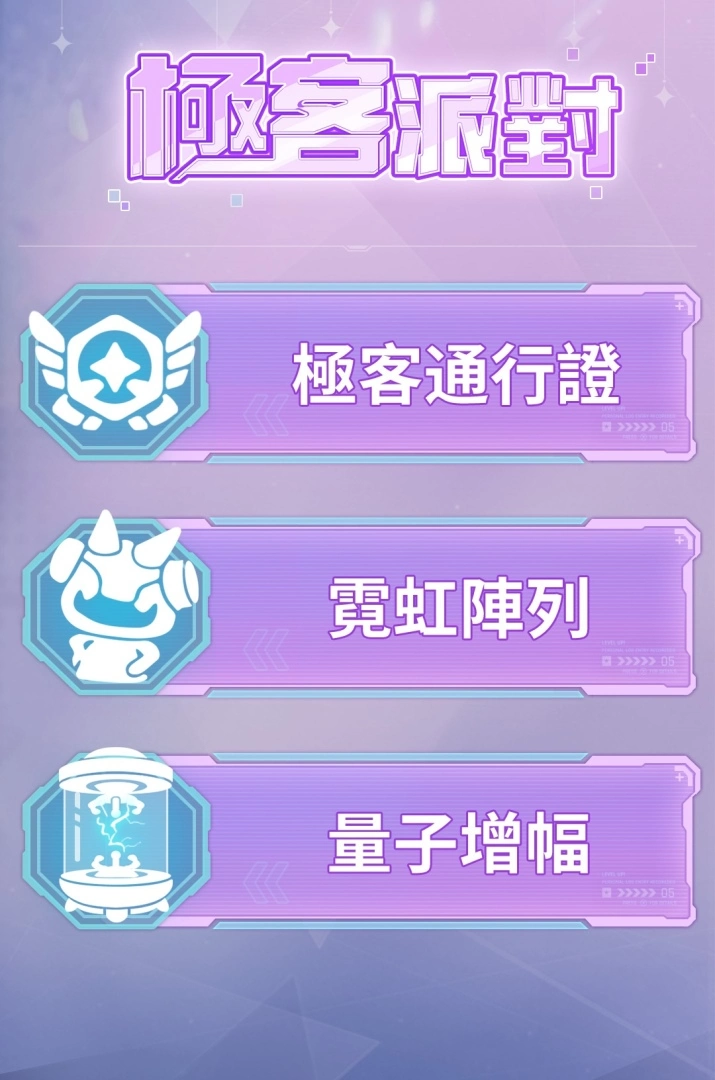 主题活动「极客派对」将于五一连假开跑,内容包含极客通行证、霓虹阵列及量子增幅,让玩家在连假休息的同时,也可以惬意游玩游戏,参加活动获取双倍好礼!