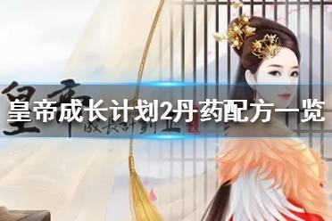 皇帝成长计划2丹药配方有哪些?皇帝成长计划2丹药配方一览。在游戏中,丹药有着较为重要的作用,它可以帮助玩家延长寿命,给妃子治病、毒杀大臣,还有很多不可描述的功效,是游戏进阶不