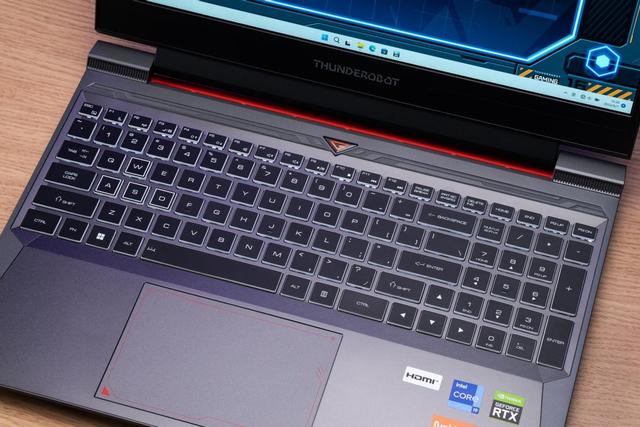 ▲几个小细节设计也符合时下大学生们的审美:斜切式的菱纹咬花工艺ThundeRobot大字母LOGO很具有辨识度。上边角有一个雷神LOGO,它当然是可以发光的,进一步提升了整机的档次感。尾部的出风口涂成了橙色,与雷神的可发光LOGO搭配,整机给人的调性是活泼而不夸张。另外,该机机身不容易沾染指纹,很好打理。
