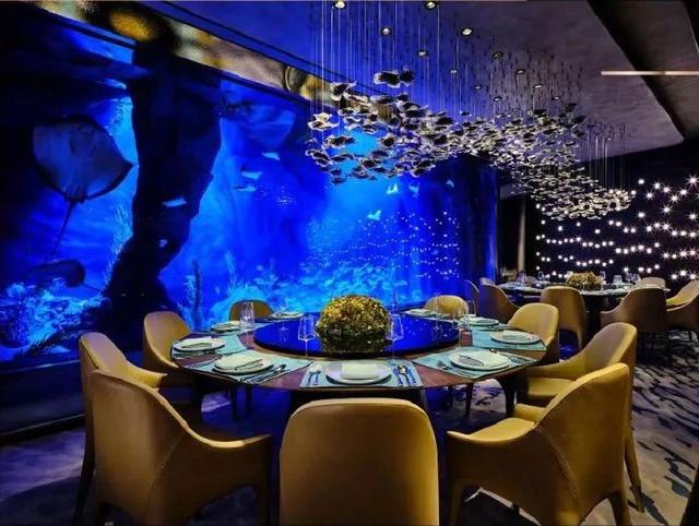 渔火餐厅大面积的观景玻璃,像极了海底世界!