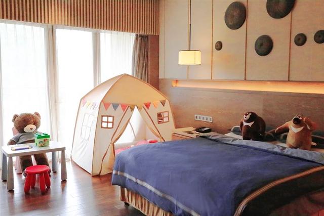 |亲子特色|童趣家庭套房,带观海阳台、儿童游戏区,拥有Q版儿童马桶的洗手间配备了儿童专用沐浴用品,儿童浴袍、牙刷、牙膏、拖鞋、床围和沐浴小鸭子。