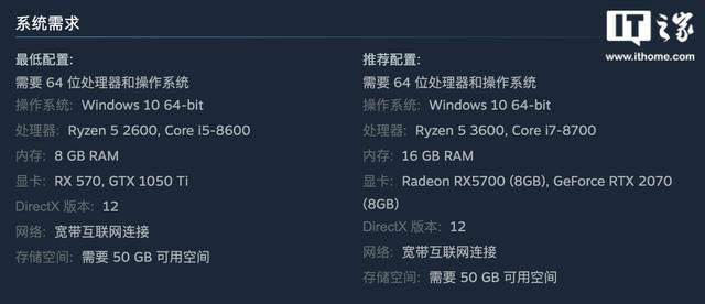 针对最低要求,PC 玩家需要 AMD 锐龙 5 2600 或英特尔酷睿 i5-8600,8GB 内存,以及 AMD Radeon RX 570 或 NVIDIA GeForce GTX 1050 Ti。在推荐配置方面,Criterion 推荐 AMD Ryzen 5 3600 或 Inte Core i7-8700, 16GB 内存,AMD Radeon RX5700 或 NVIDIA GeForce RTX 2070。不过目前官方没有给出最低配置和推荐配置所对应的画面设置级别。