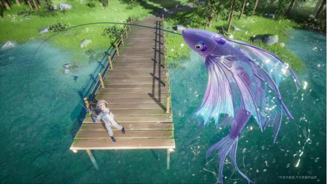 闲暇之余,跟暖暖一起穿上休闲的渔夫套装,在水天一色的大湖泊边钓鱼。