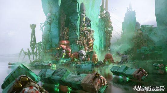 凯珊帝国的整体设计基调透露着一股“中古东方文明”的既视感,在翠玉科技的加持下,这片饱经沧桑的土地上孕育出了独特的民俗与令人赞叹的自然景观,比如被翠玉风暴席卷过后的“翠玉之海”,你能在这里看到凯珊帝国工匠们对翠玉的采掘工作,并参与到保卫工人们的史诗级任务中去。