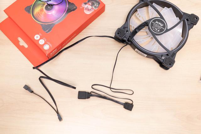 这款XPG炫彩风扇采用了FDB液压轴,性能稳定,12cm的转速最大可达2000RPM,14cm转速最大可达1800RPM,噪音更低。特别的双层扇叶结构,叶片上还带有额外的鳍片,可以增大风量,减小风阻。