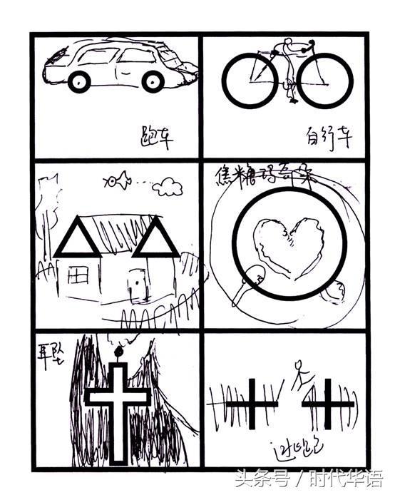 画作解读:格子一是一辆跑车,表示你觉得自己是注定要成为人上人,坐在豪车里的。而格子二表示,在其他人眼里,今天的你还只是一个要努力骑着两个轮的自己行车卖力的青年,没关系,加油哦,你可以的!格子三里画了一个温馨的家,表示在你成长的过程中是感到幸福和快乐的,你喜欢你的家。格子四是一杯焦糖玛奇朵,代表你的爱情苦中带甜,也定会苦尽甘来,回味无穷。格子五画了十字架的耳坠,代表未来的你不会放弃追逐时尚,而不是被生活的琐碎淹没。格子六画了一个跳出围墙落跑的小人,代表你热爱生活,充满活力,注意健康,远离死神的气息。