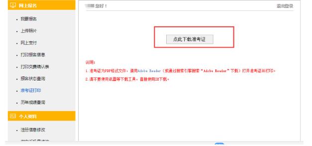 准考证打印入口开通后,左侧会出现准考证打印字样。点击下载即可。