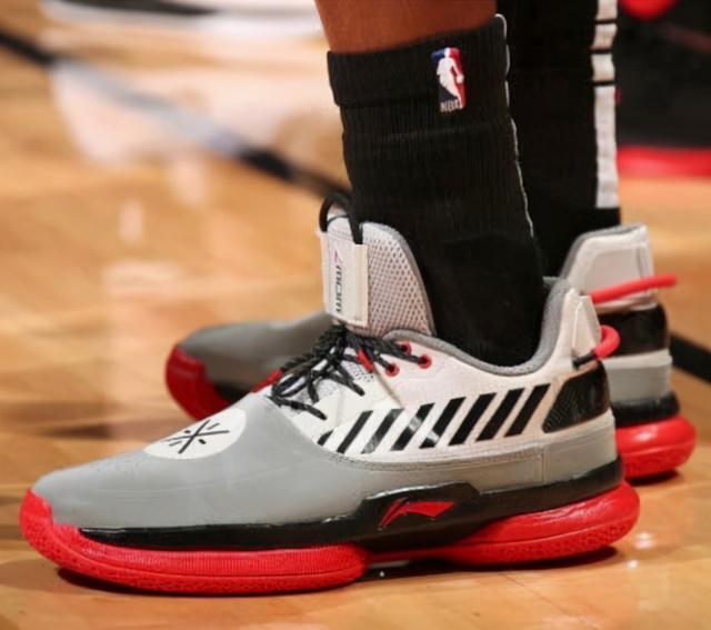 后来这一代球鞋升级到PG2.5(玩家们可以理解为PS4到PS4pro)之后,还推出了初代PS经典皮肤的灰色,当时这款鞋普通配色不到600元的情况下,PS联名版本被炒到将近2000元。不过需要提及的是,虽然乔治在比赛中也曾上脚示范联名款,但是根据比赛规则,球鞋亮灯属于干扰对方球员视线的做法,所以不能点亮。