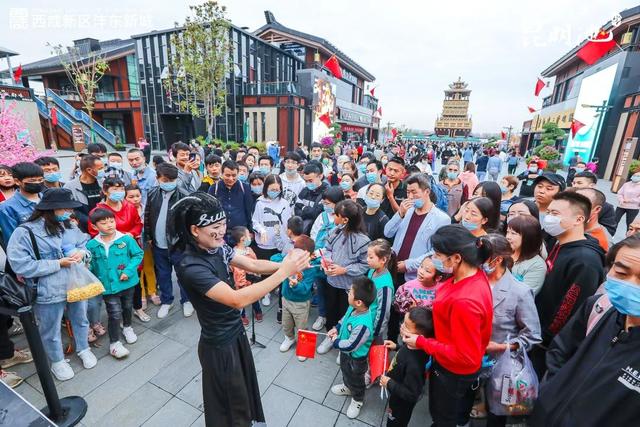 泾河新城茯茶镇中秋国庆双节主题文化活动用新国潮的思想传达茯茶文化、陕商文化、丝路文化与茯茶镇的关联性,同时深度传播“茯掌柜来了”的影响力。小厮、周莹、茶商等人物演绎,高度还原《那年花开月正圆》的影视剧情,将游客与活动融为一体。悬浮茶神陆羽、不倒翁茯茶仙子……这些网红行为艺术也在国庆期间亮相,随着茯茶镇主题曲《这杯茶》曼妙起舞的茶仙子,引发不少游客拍照打卡。