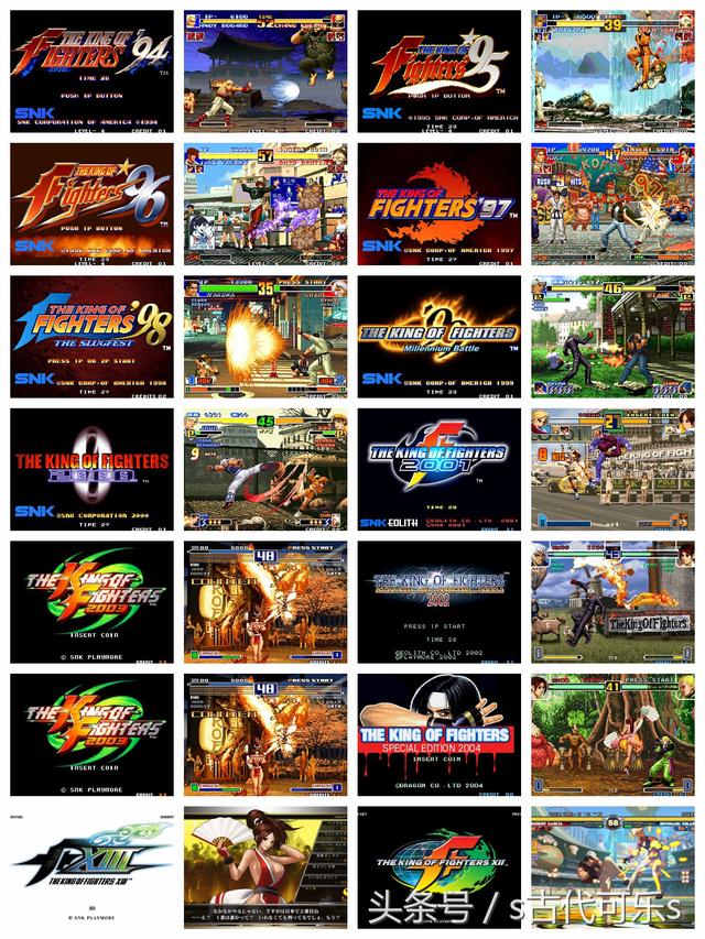 SNK拳皇系列 堪称史上最长系列游戏 能入吉尼斯世界纪录了 作为SNK公司格斗游戏史上的里程碑 SNK1994年发行的拳皇94史无前例的采用了3对3的游戏方式 所有队伍以国籍划分 并聚集了饿狼传说 龙虎之拳等多款游戏中的人气角色 使曾经接触过这些游戏的玩家激动不已 同时拳皇94也首次采用所谓的续力系统 拳皇95开始 出现队伍编辑功能战略性大幅提高 可以组创自己的梦之队 个人觉得95那种拳拳到肉的打击感最好 96的系统较前作变动很大 有人喜欢有人不喜欢但这也为97打下了良好的基础 使97在出生后便红遍半边天 即使现在 玩家最多的也非97莫属了 98齐集了50位以上的主角 曾经格斗人数最多的作品在拳皇系列中好评最高的是98 也正赶上街机厅落寞的那些年 98之后 就没有怎么进过街机厅了 之后的作品 也只是在模拟器上偶尔玩一玩 后时代的拳皇 如 12 13 14 引入了更先进的3D渲染技术 画面也更丰富绚丽 可能在不同玩家的心目中都有他们认为最经典的一代拳皇
