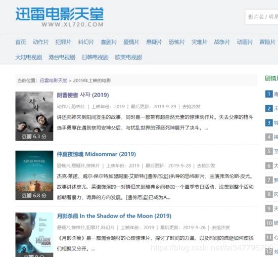 打开目标网站(分类是2019年上映的电影),分析我们需要的数据