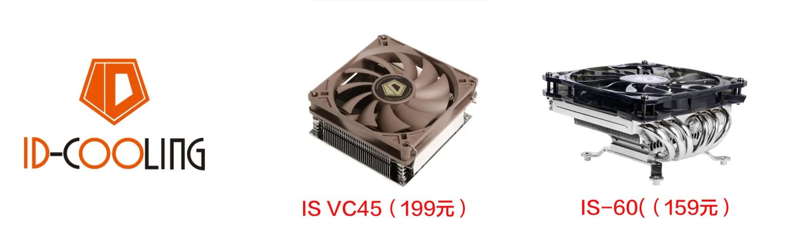 ID-COOLING:深圳品牌,产品设计很棒,而且性价比高。主力产品是下压式散热器,ITX机箱用户可以选择199元的IS-VC45,采用均热板设计,厚度仅为45mm;159元的is-60,采用6热管设计,也是一款性价比很高的产品。
