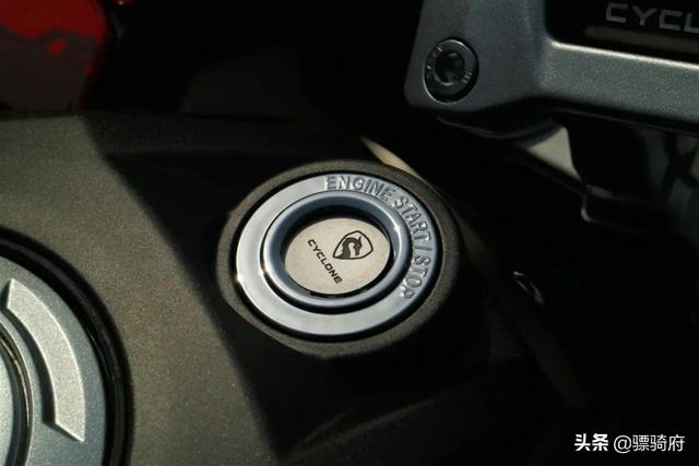 油箱上的无匙启动按键,做工精美,自带夜光模式。