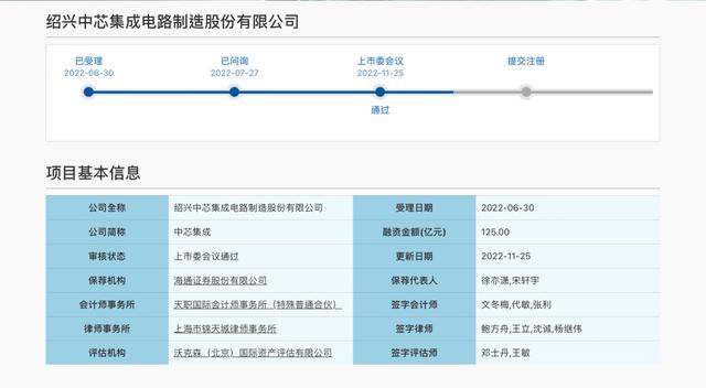 IT之家 11 月 27 日消息,11 月 25 日,绍兴中芯集成电路制造股份有限公司(中芯集成)首发通过上交所科创板上市委会议。此次 IPO 的保荐人为海通证券,拟募资 125 亿元。