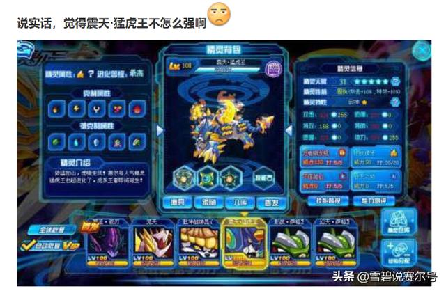 但是再往上一点点,匹配到年费的时候就打不过。不过后面也真有回归玩家贴吧直播周年庆精灵巅峰实战的帖子,一个255爆攻速流的老虎,抬走了不少王雷、重生、帝君,但说真的,这完全体的猛虎王也就是个奇兵,只能当A级精灵玩玩。