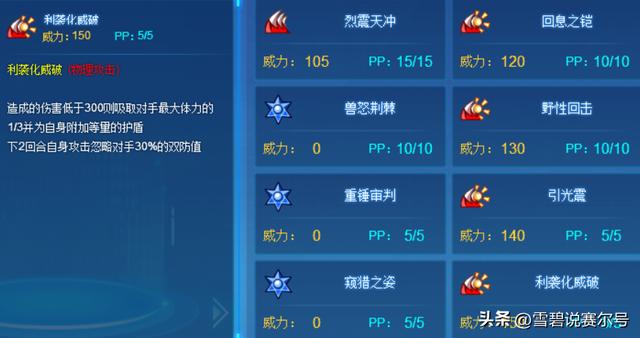 逆光锤:先3消回合,消除成功对手失明,未触发补偿1/3的吸血;先3固定粉伤250,对手处于异常粉伤翻倍。只能说一般,中规中矩,2017年的二线下精灵水平。