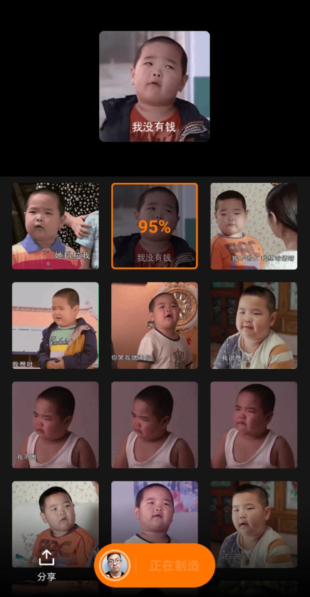 也是同样的操作,选择好表情包模板就可以换脸了。