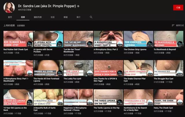早些年,皮肤科医生桑德拉 · 李更是利用这种视频,在 YouTube 上获得了将近 700 万粉丝。