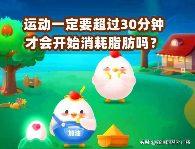 蚂蚁庄园今日答案:运动一定要超过30分钟,才会开始消耗脂肪吗?答案:不是。