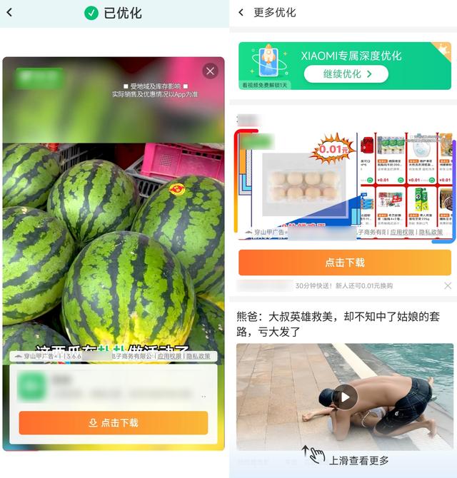 清理优化中规中矩属于一般水平,但清理后立马就来广告了,而且还是双重广告。