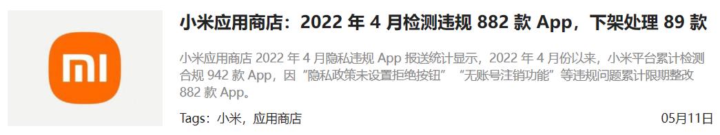 比如今年4月,小米就对应用商店来了一波大清理,检测并且下架处理违规App。