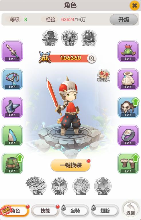 游戏还配备挂机功能,玩家若想升级,可以去野外挂机打怪。一键自动放置爬塔,可以有效的减少玩家手动操作的疲劳感。