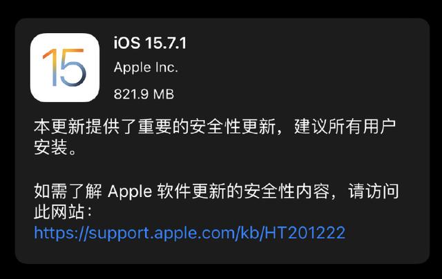 更新建议:建议未升级到 iOS 16 的用户升级 iOS 15.7.1,打算留在 iOS 15 的小伙伴, iOS 15.7.1 也是一个不错的养老选择。