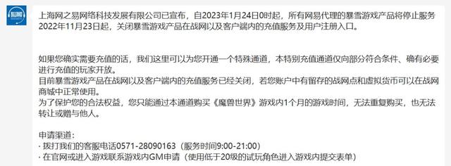 最近几天,由于暴雪与网易宣布不再继续合作之后,国服的暴雪游戏充值渠道在11月23日正式关闭。但是由于有很多玩家并没有提前了解到情况,导致自己的账号时间到了之后无法游戏。在玩家多次申请之后,两天前网之易负责人张栋在微博表示正在想办法给玩家开通临时充值渠道。