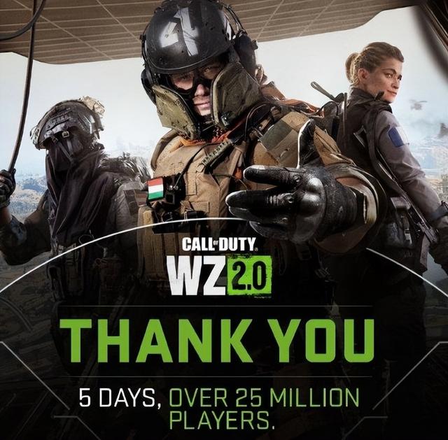最近,《使命召唤》官方就在推特上公布了,《使命召唤战区2.0》玩家数超过2500万,游戏仅用5天就达到了这个人数,可谓是相当出色。
