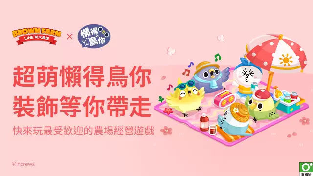 最受欢迎的农场手游《LINE 熊大农场》与「懒得鸟你」将于 2 月 27 日开始进行合作!这次懒得鸟、直白妹和秀吉等人气角色将伴随着春天远足风来到熊大农场玩耍,合作期间除了在游戏内推出各种限定小伙伴与各式各样的原创装饰之外,还将推出最受到农友们喜爱的任务贴图活动,只要在活动期间内完成指定的游戏任务,即可免费下载16张超可爱的懒得鸟你贴图。大家快来熊大农场一起开心每一天!