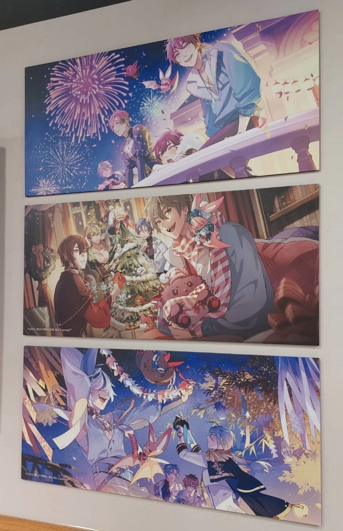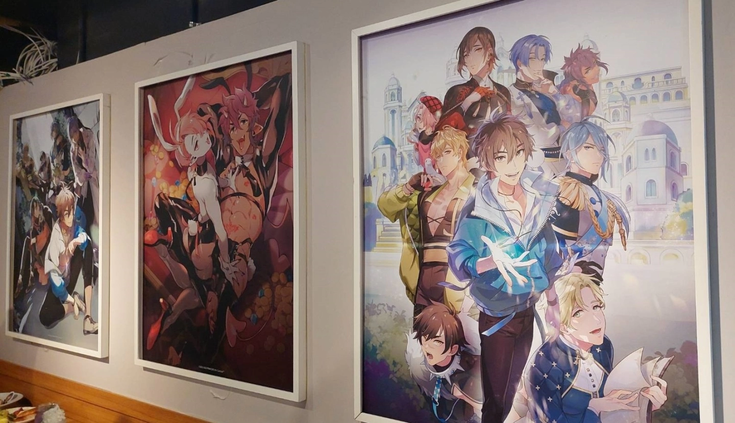 店内的眷属立牌,以及墙上多张彩图