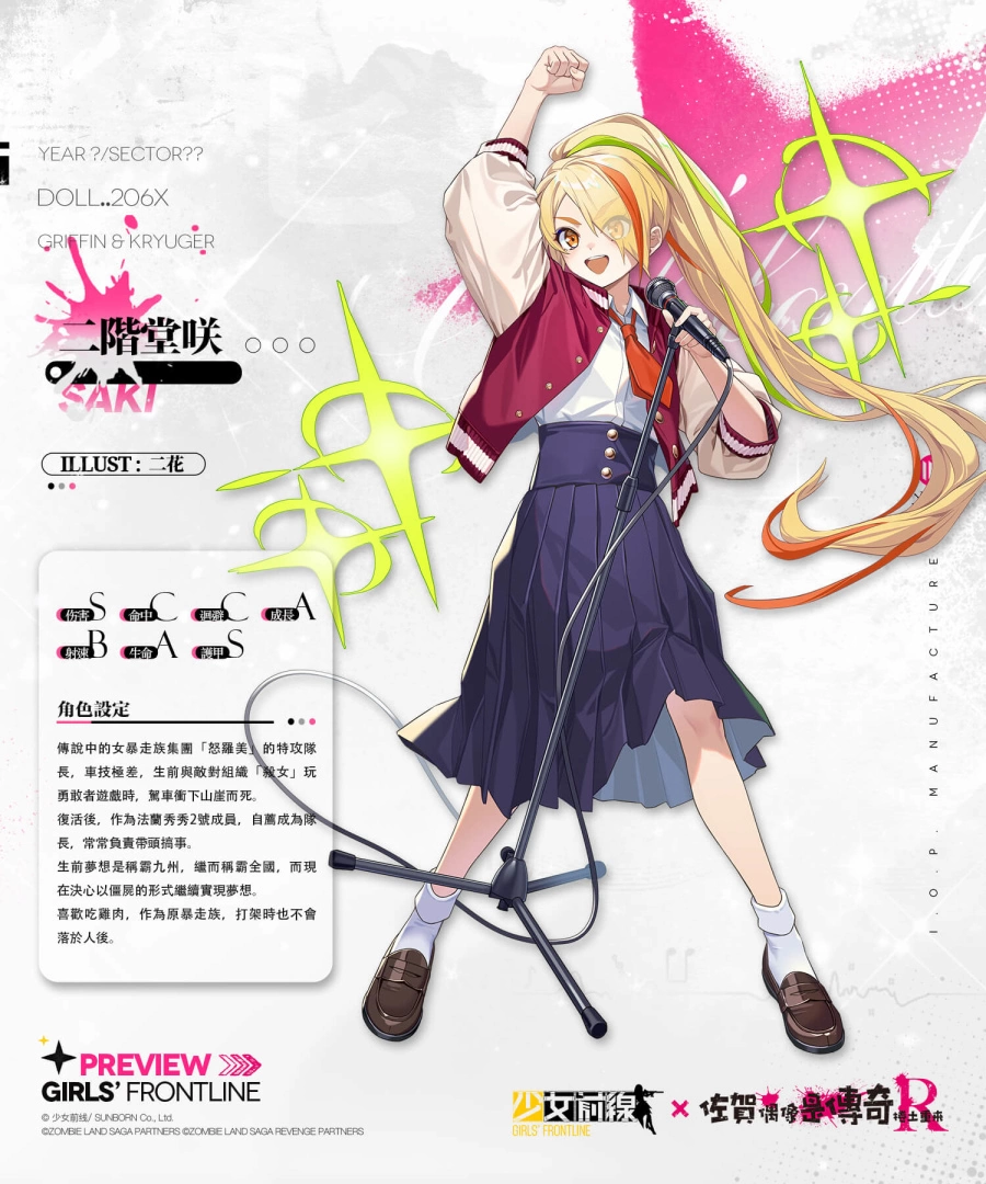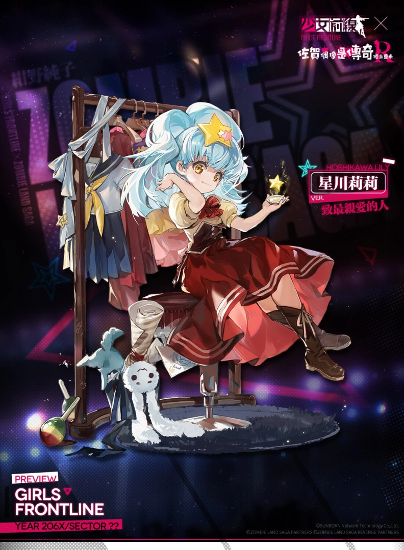 为摆脱失眠的困扰,阴错阳差地成了殭尸偶像的製作人?本次《少女前线》与《佐贺偶像是传奇R》联动期间,通关联动剧情「雪浪映花颜」的指定活动战役时,可获取包含联动特典人形「夕雾」、「星川莉莉」、「山田妙」、替代核心、记忆碎片等奖励!