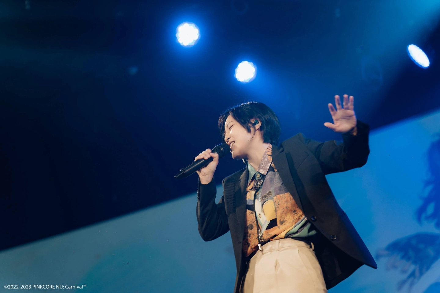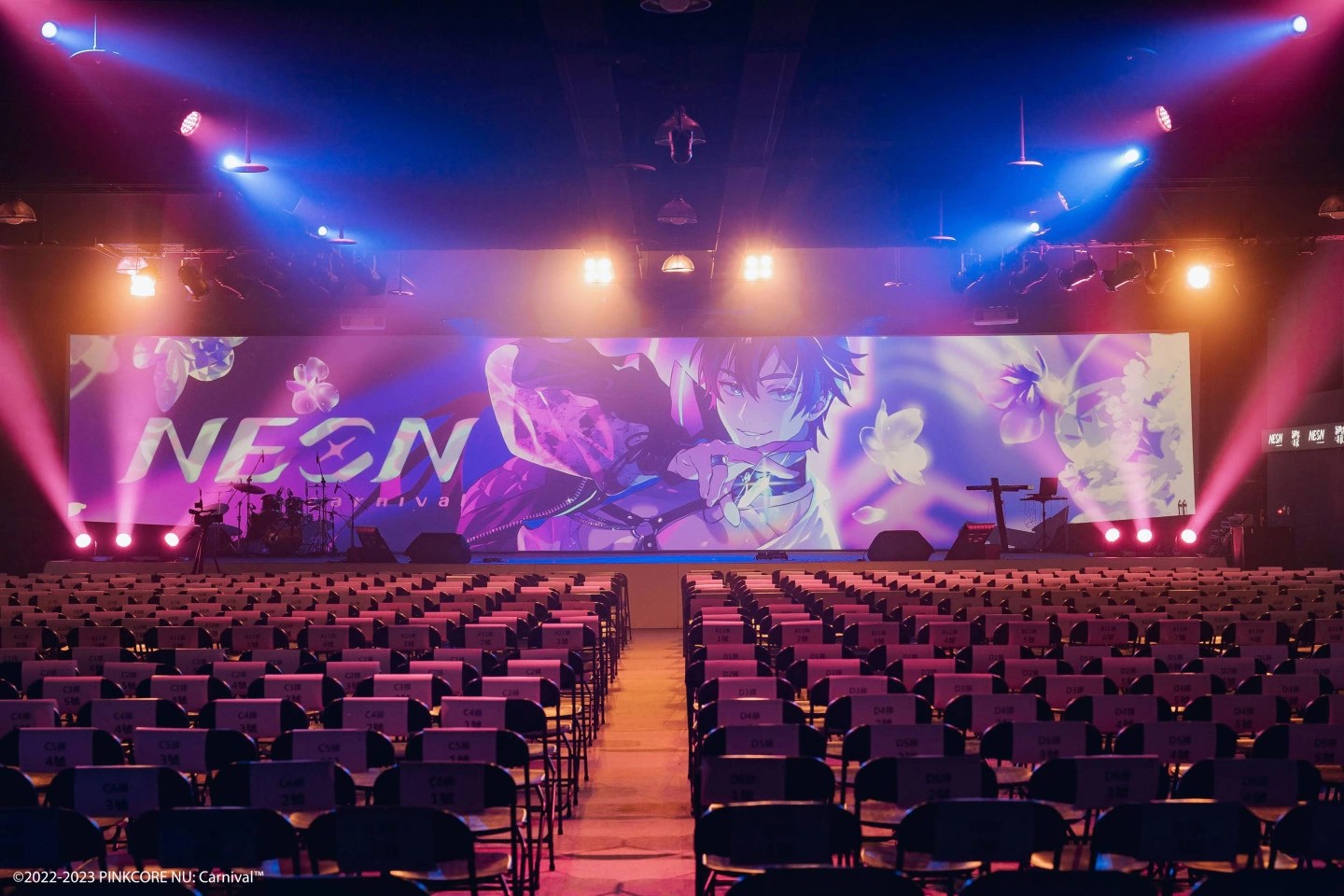「Neon Carnival」以声光效果展现出《新世纪狂欢》的游戏魅力。除了音乐演出外,现场也特地邀请到饰演游戏主人公「伊得」的「刺草ネトル」,以及饰演眷属「奥利文」的声优「一夜爱」,与玩家们大方分享自己在《新世界狂欢》的配音心得以及对于饰演角色的种种情感。
