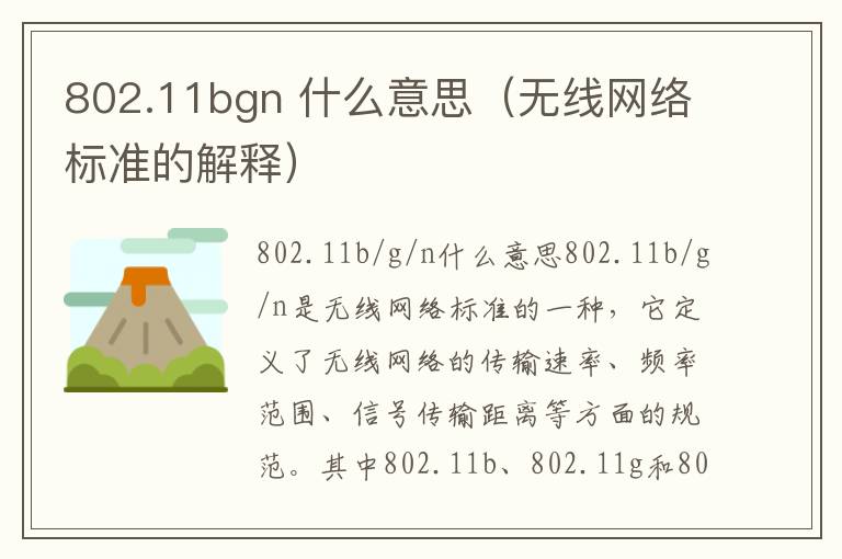 802.11b/g/n是无线网络标准的一种,它定义了无线网络的传输速率、频率范围、信号传输距离等方面的规范。其中802.11b、802.11g和802.11n是三种不同的无线网络标准。